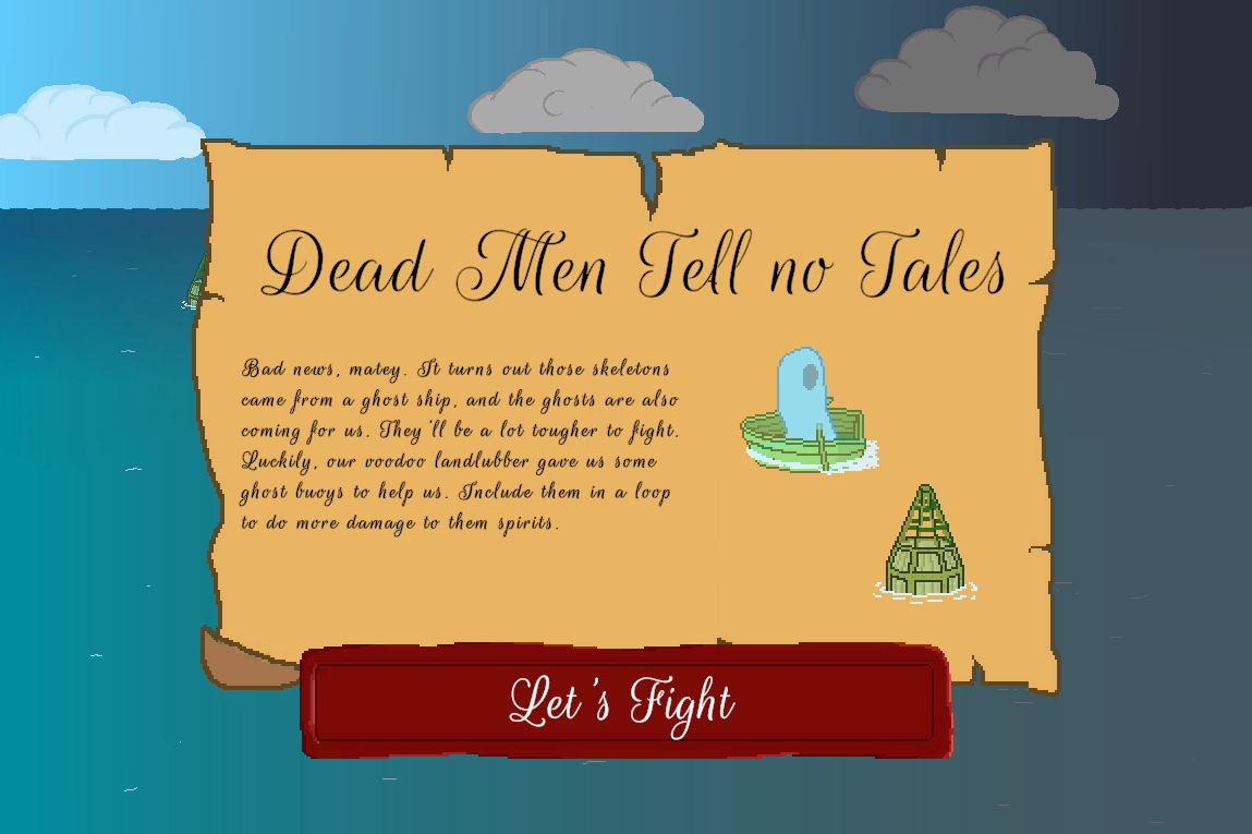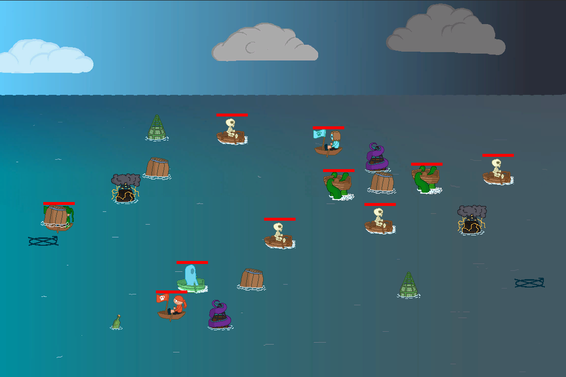 Yarr (and other pirate slang), your pirate crew has angered a Davey Jones, and his crew have come to attack us. Fortunately, you have a chance to fight back using a new looping weapon. Fight waves of the dead as more and more enemies attack and more tools are added.